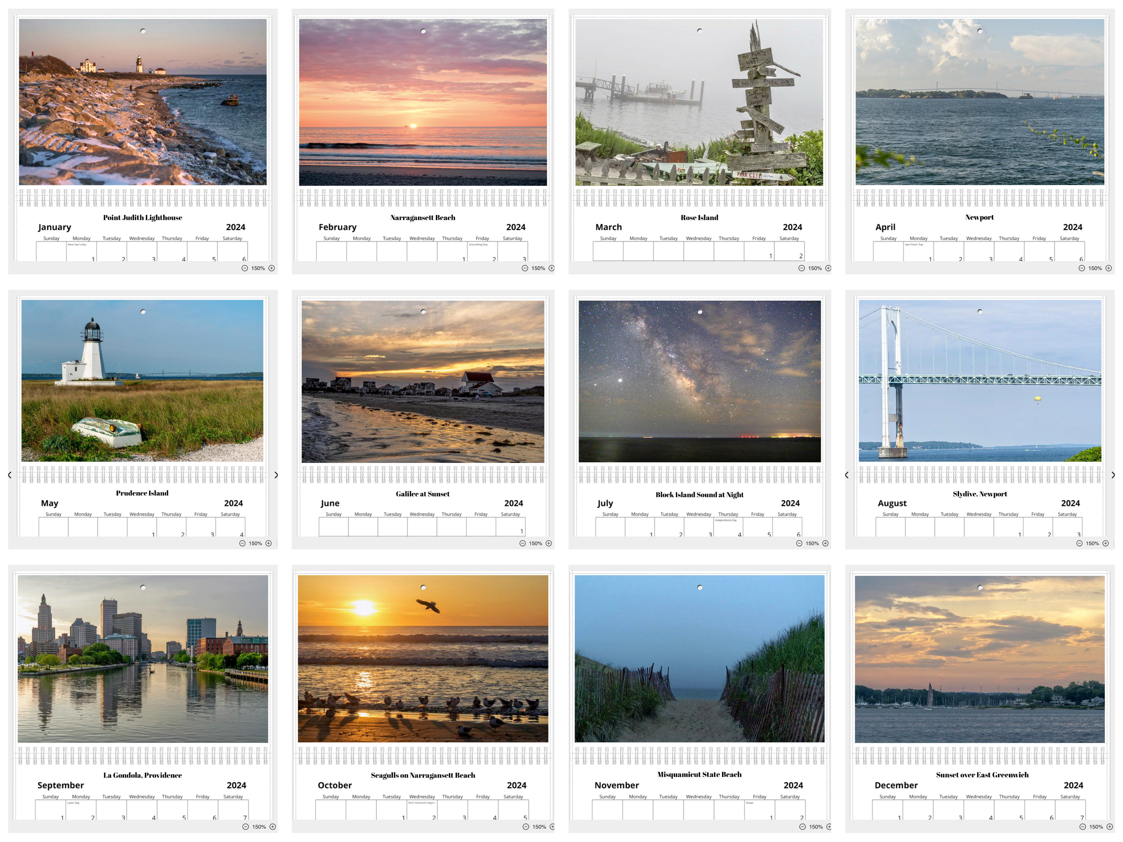 Each 8.5x11" calendar features 12 photos from The Ocean State
